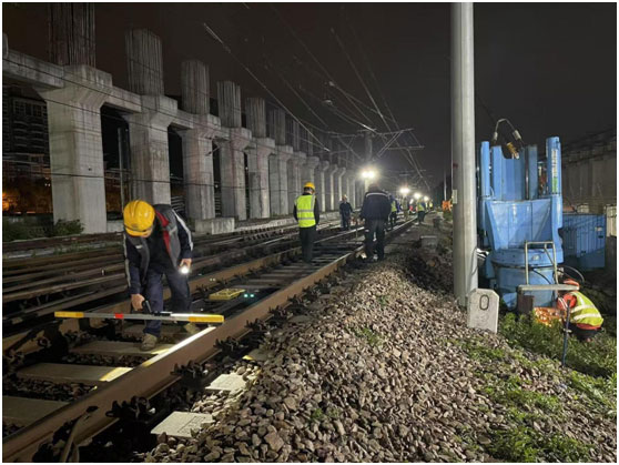 2025年5月,莘莊地鐵站上蓋綜合開發項目,緊鄰上海地鐵一號線上行線,臨地鐵軌道距離近2.5米,施工難度大,安全風險高。施工需在地鐵停運后的深夜窗期進行,需完成靜壓鋼板樁等多道工序,并實時對地鐵軌道進行監測檢查。